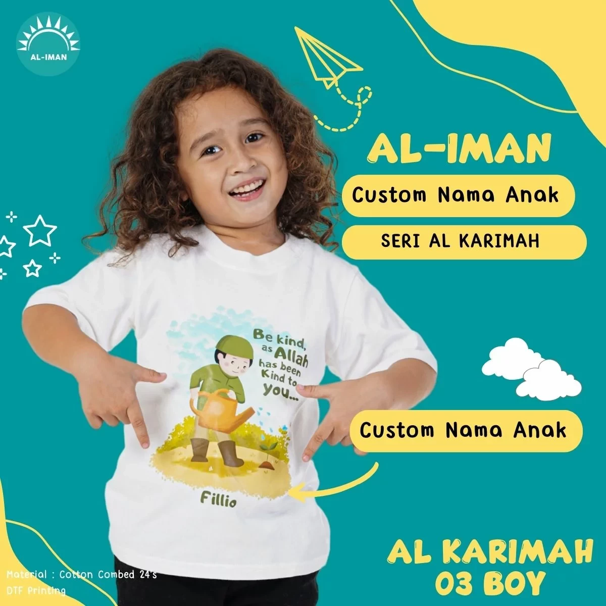 Ukuran Kaos Anak Custom Al-Iman Seri Al Karimah Lengan Pendek