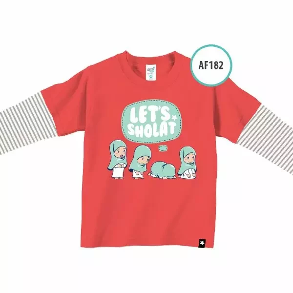 Kaos Afrakids AF182 Let's Shalat lengan panjang warna fushia.