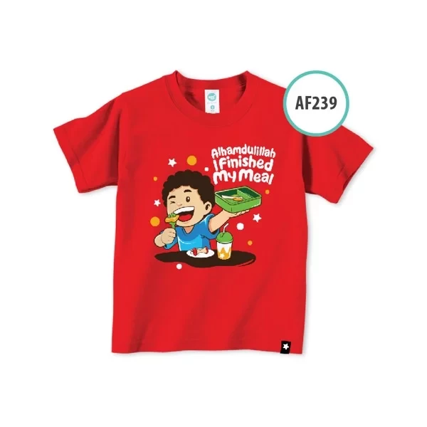 Kaos Afrakids AF239 Alhamdulillah I Finished My Meal lengan pendek.