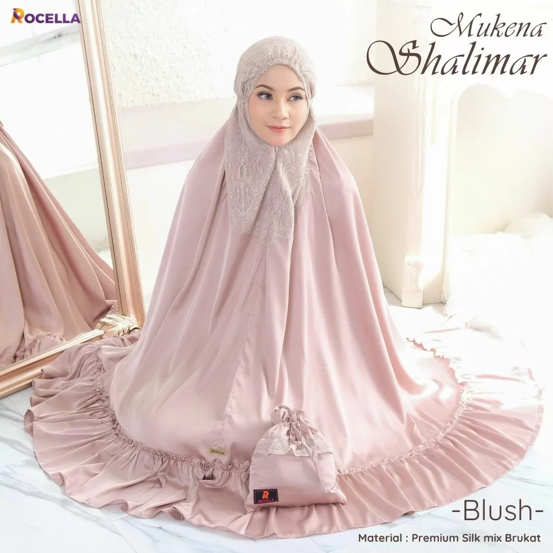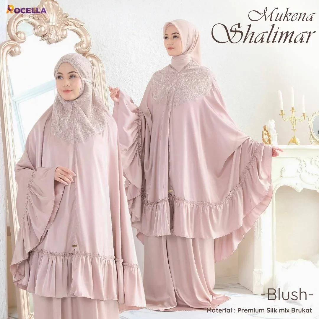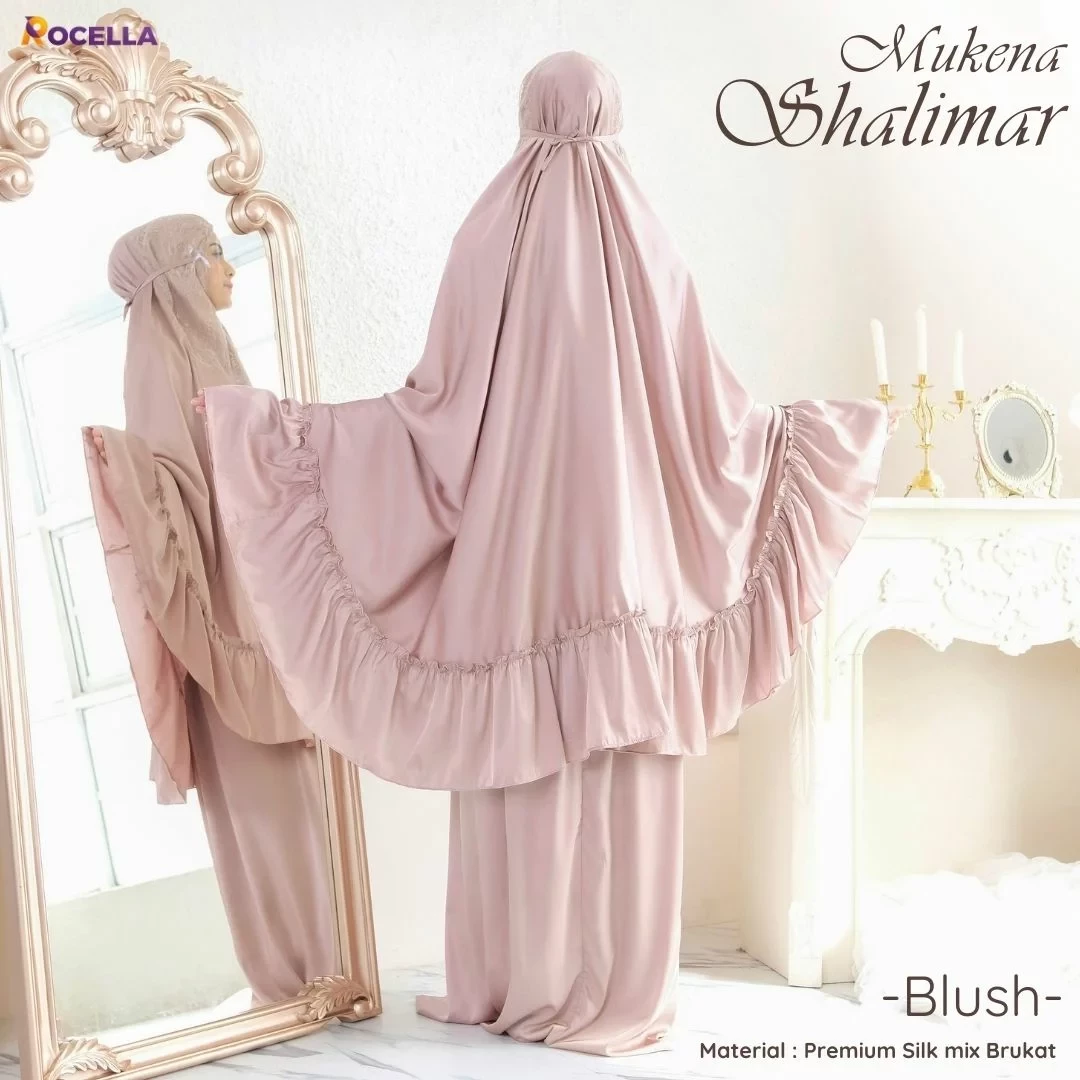 Rocella Mukena Shalimar Blush, mukena 2 in 1 yang menggabungkan model reguler dan model ponco. Mukena shalimar dilengkapi dengan zipper di bagian dagu yang berfungsi untuk mengubah model reguler ke model ponco maupun sebaliknya. Mukena salimar juga dilengkapi dengan tas mukena sehingga memudahkan untuk dibawa bepergian.